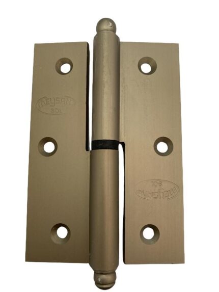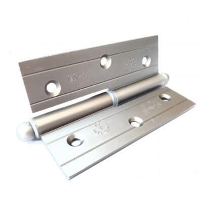 Alüminyum Okka Menteşe Sağ 7 cm, kapı kapakları, açılır kapanır malzemelerde kullanılan, bir mille birbirine tutturulmuş, biri sabit, öbürü hareketli iki parçadan oluşmuş metal menteşedir.
